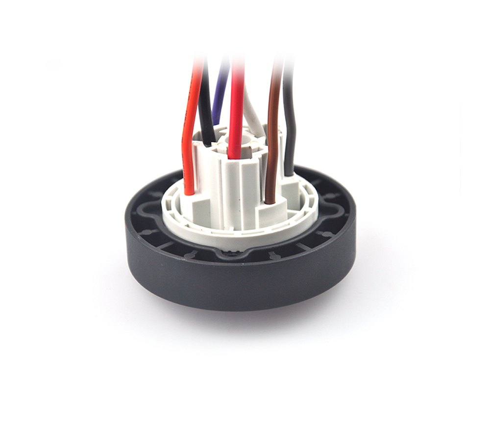 通用千道路和區(qū)域照明的ANSI Cl 36.41-2013調(diào)光插座的應(yīng)用要求。所有觸點預(yù)先安裝在插座外殼中,預(yù)裝30CM導(dǎo)線,在三條線路電壓交流電路上使用14AWG電源線,在四路信號調(diào)光控制中使用18AWG電源線。應(yīng)用環(huán)境溫度-40℃—70 °C ,適合戶外各種溫度要求的燈具。插座組件為4個調(diào)光觸點。