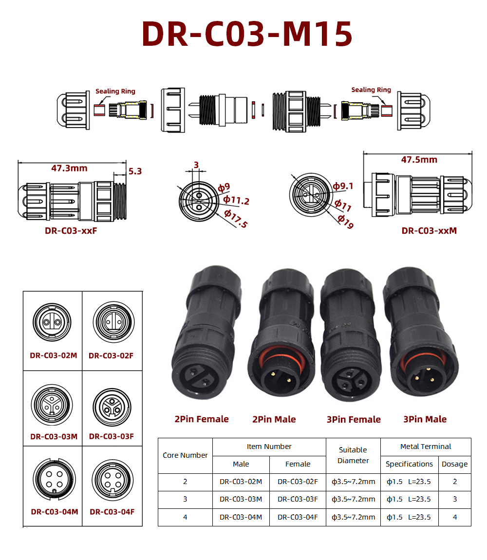 | 用線纜外徑(Wire Diameter) | φ3.5 ~ φ7.2 |