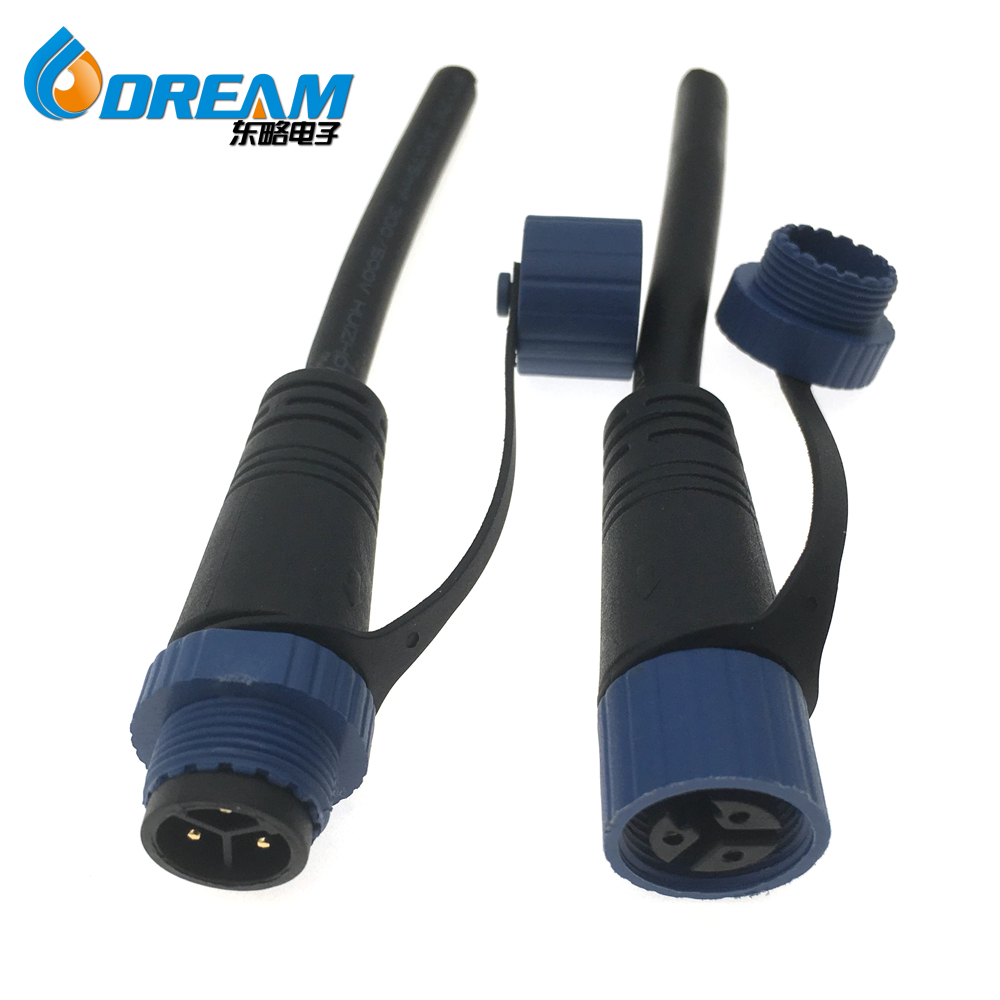 IP68 M15 2pin 3pin 22AWG 24AWG Custom Outdoor Light LED Waterproof Connector Extension Cable